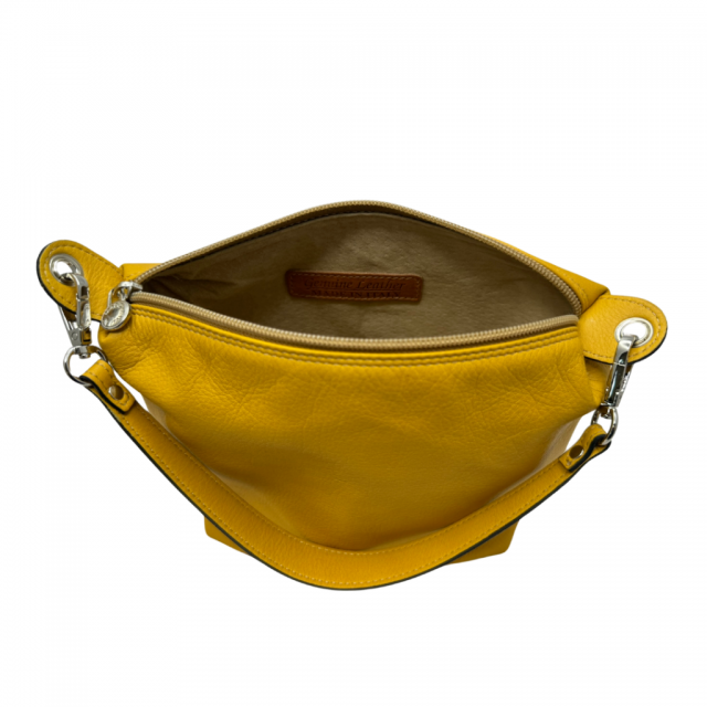 Borsa a spalla in vera pelle di vitello nappato, con tracolla per un utilizzo versatile.Disponibile in diversi colori, tra i quali: giallo, verde e blu.