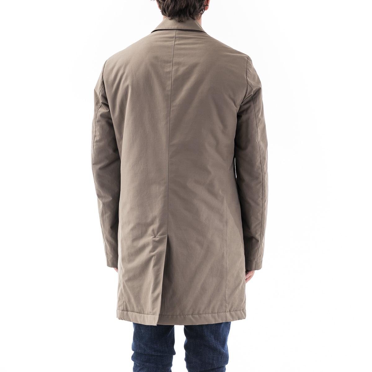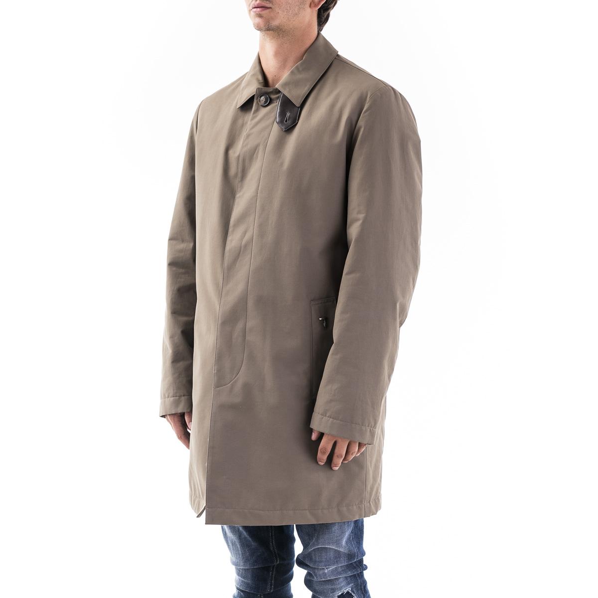 Cappotto Trussardi: colletto classico chiusura frontale con bottoni due tasche a fessura su pannello frontale patch logo in metallo sulla tasca frontale uno spacco sul retro chiusura collo con patch una tasca interna con bottone a pressione con fodera.