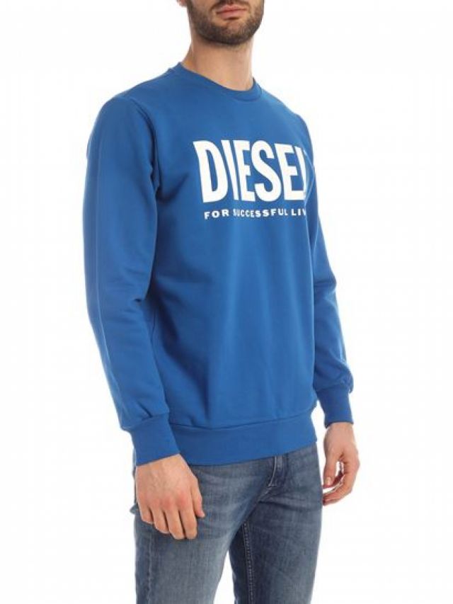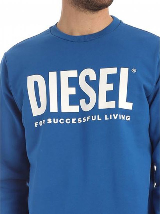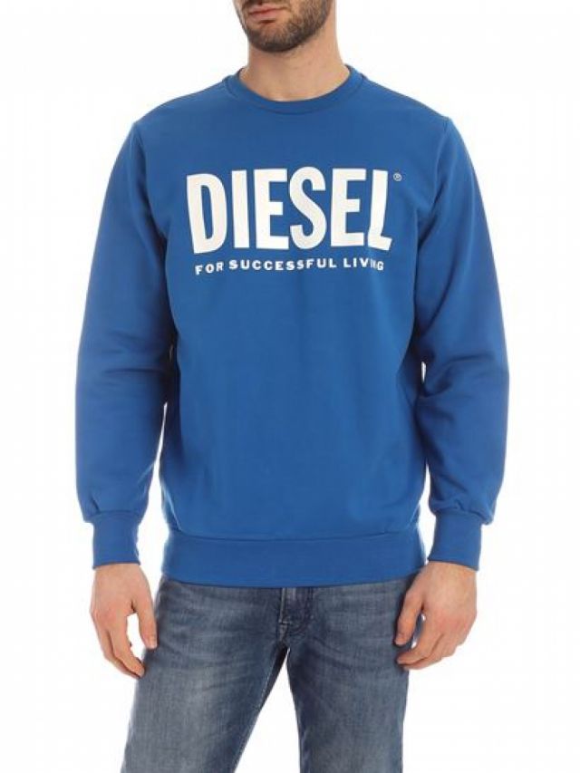 Felpa Diesel uomo, in cotone. Girocollo, collo, polso e fondo a costine, stampa logo su pannello frontale