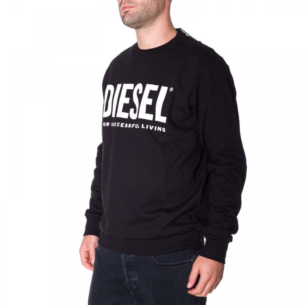 Felpa Diesel uomo, in cotone. Girocollo, collo, polso e fondo a costine, stampa logo su pannello frontale