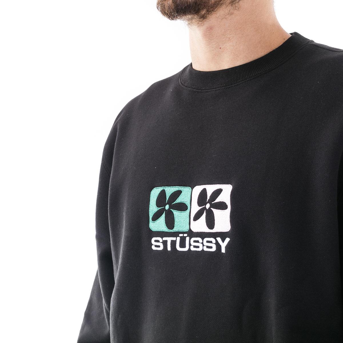 Felpa Stussy: girocollo logo ricamato su petto collo polso e fondo a costine.