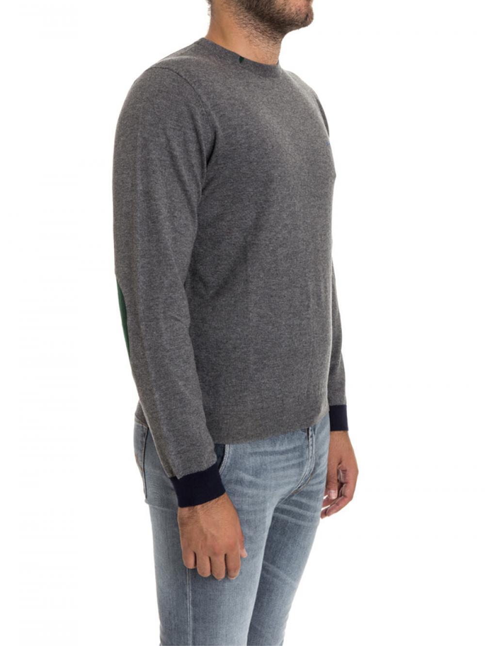 • Pullover Sun68 in Lana e Cotone: girocollo collo, fondo e polsi a costine applicazione a contrasto sui gomiti logo ricamato sul petto.