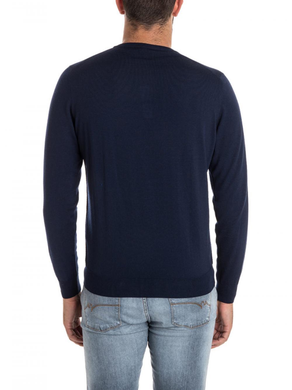 Maglia in lana merino: girocollo collo, polsi e fondo a costine made in Italy.