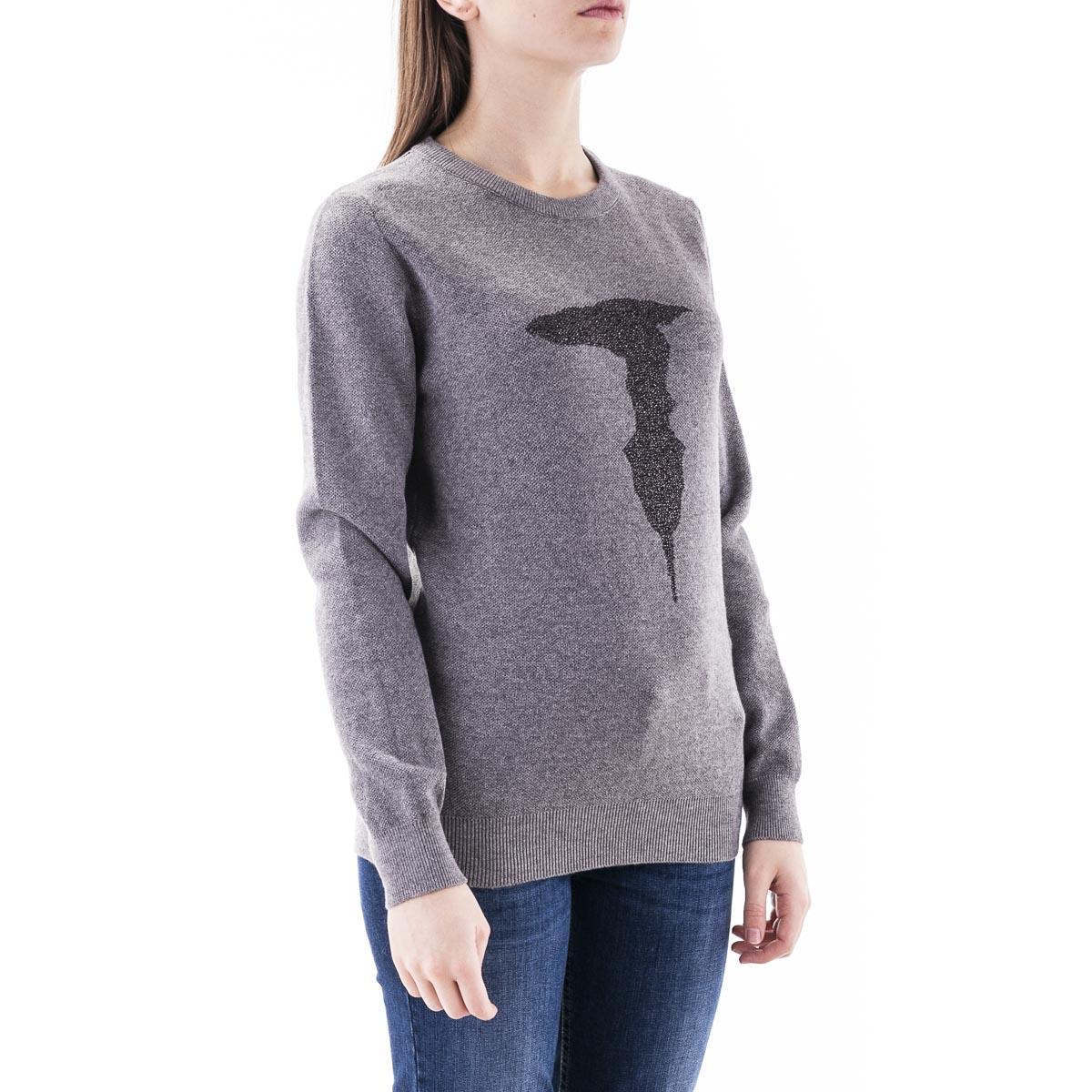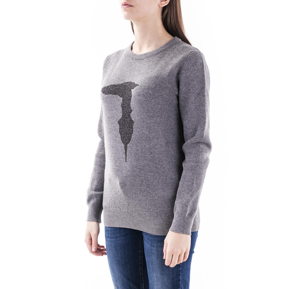 Maglia Trussardi Jeans: girocollo collo polsini e fondo a costine logo con materiale a contrasto su petto made in Italy.
