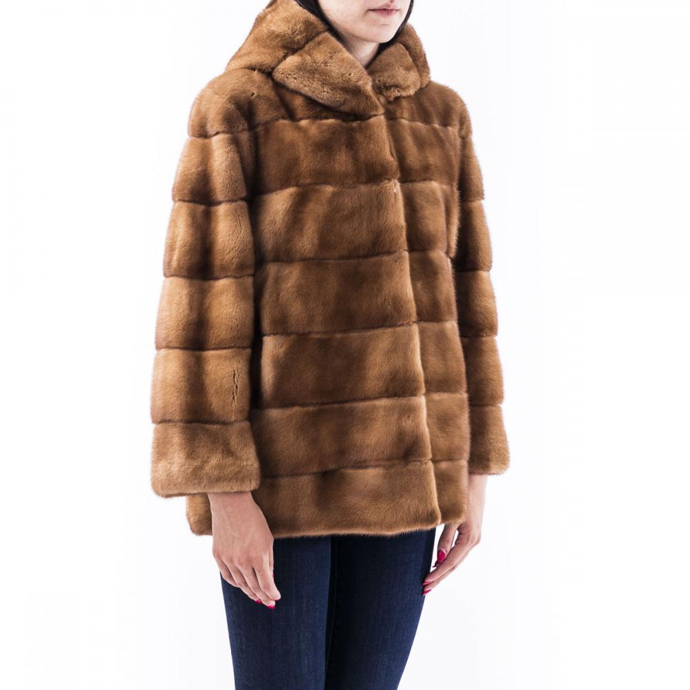 Pelliccia Visone Frame: cappuccio non rimovibile due tasche laterali con fodera chiusura frontale con ganci made in Italy.