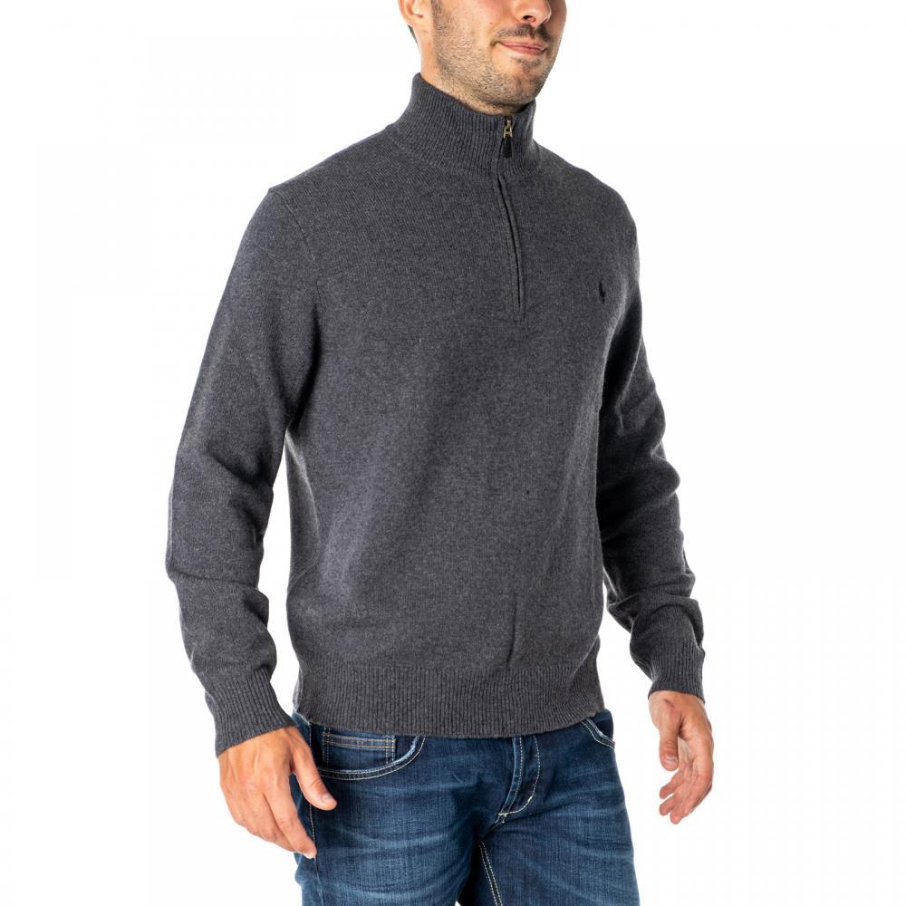 Pullover Ralph Lauren in Misto Lana e Cashmere: collo alto chiusura con zip collo, polsi e fondo a costine logo ricamato sul petto.