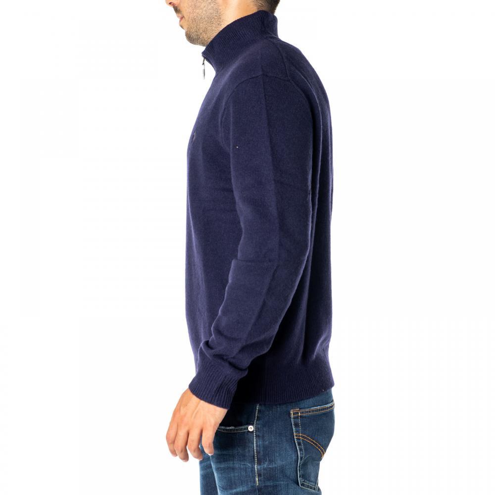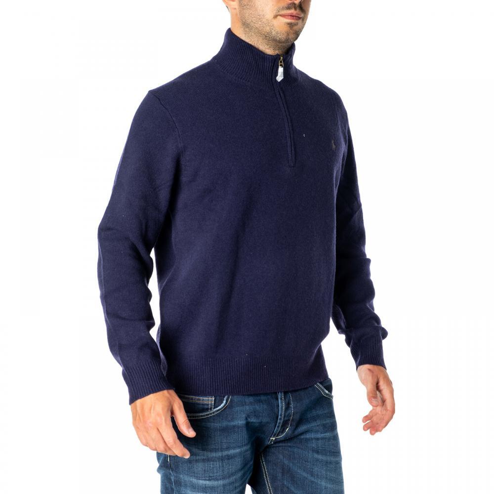 Pullover Ralph Lauren in Misto Lana e Cashmere: collo alto chiusura con zip collo, polsi e fondo a costine logo ricamato sul petto.