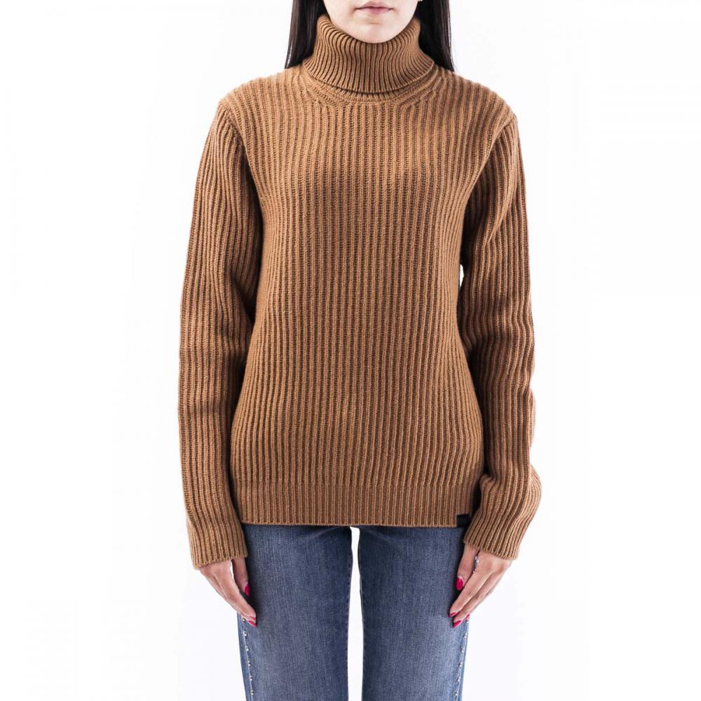 Pullover Trussardi Jeans in Lana: collo alto maglia lavorata a costine made in Italy .