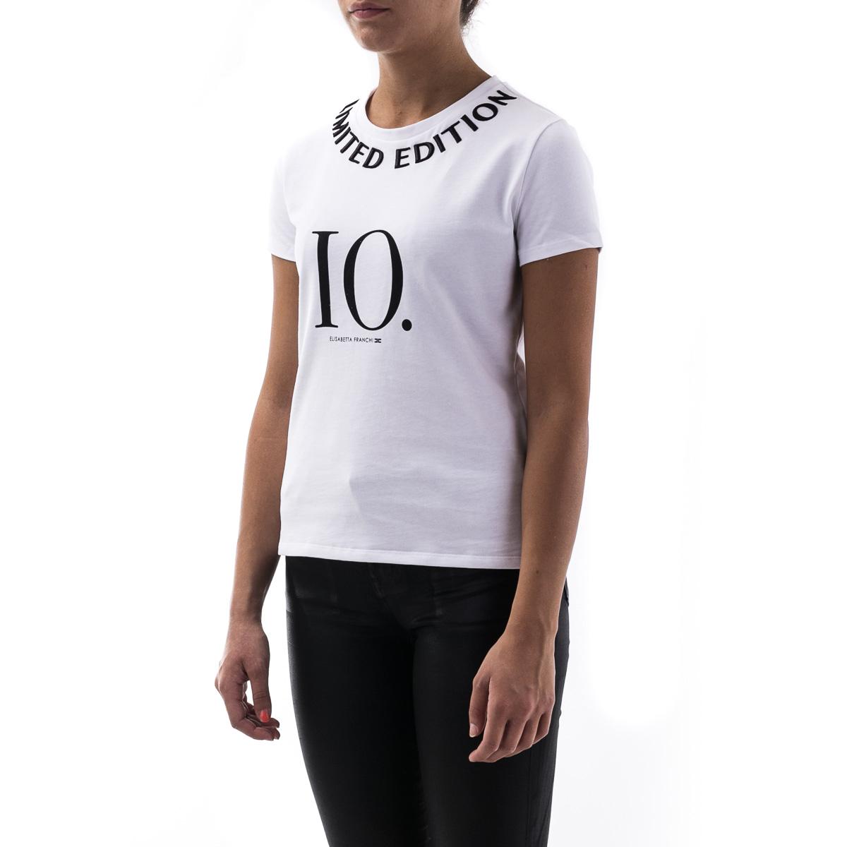 T-shirt Elisabetta Franchi in cotone: girocollo scritta "limited edition" ricamata sul collo stampa logo su pannello frontale made in Italy.