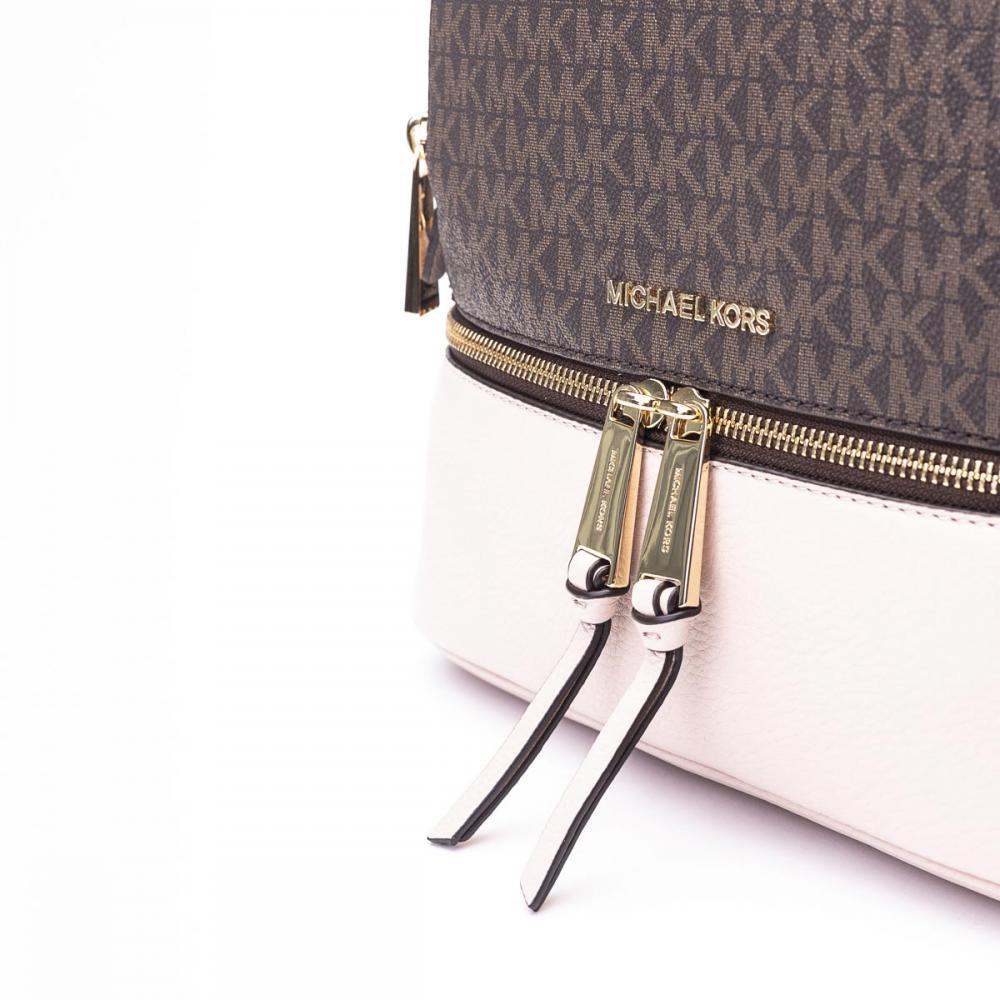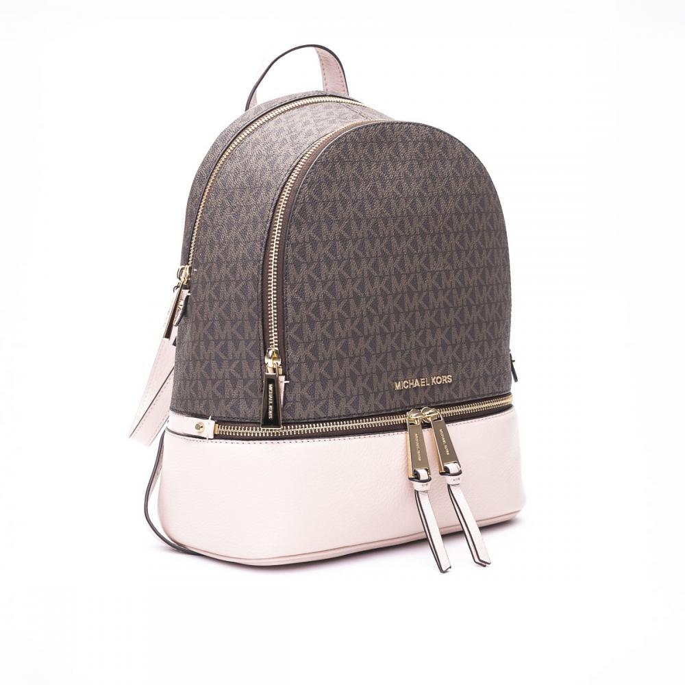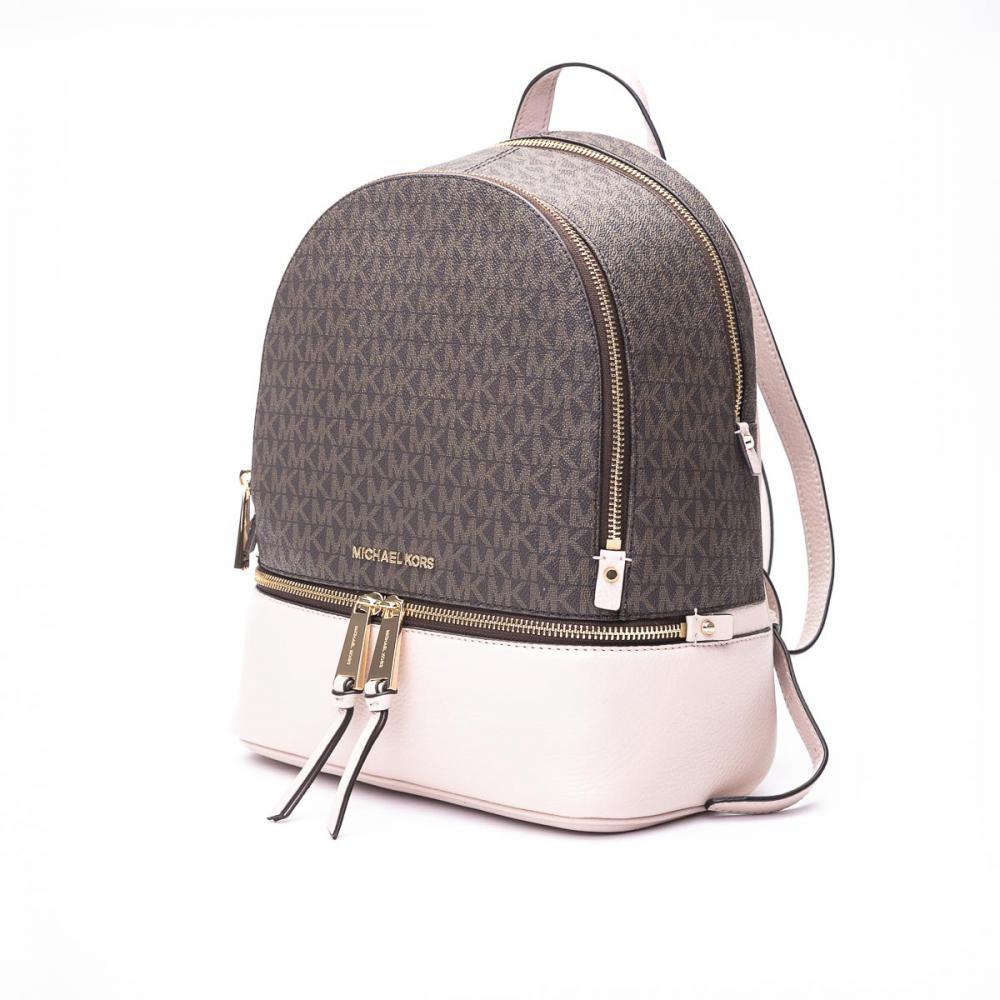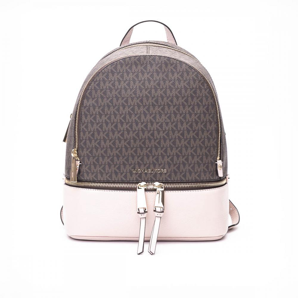 Zaino Michael Michael Kors "RHEA": manico singolo due spallacci regolabili dettaglio logo in metallo chiusura con zip due scomparti con zip una tasca frontale con zip cinque tasche interne a fessura una tasca interna con zip dettagli logo su tutta la superficie con fodera Altezza: 33cm Larghezza: 25cm Profondità: 11cm.