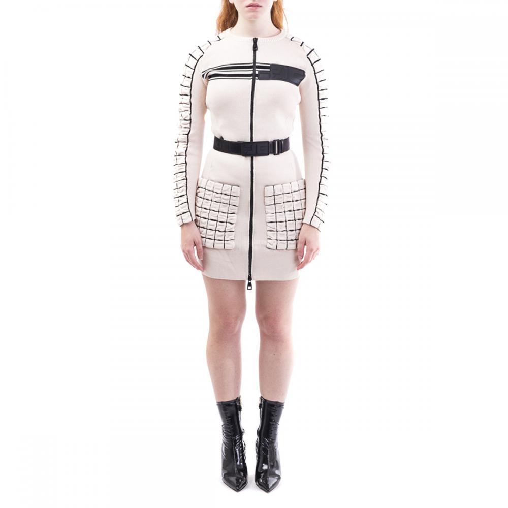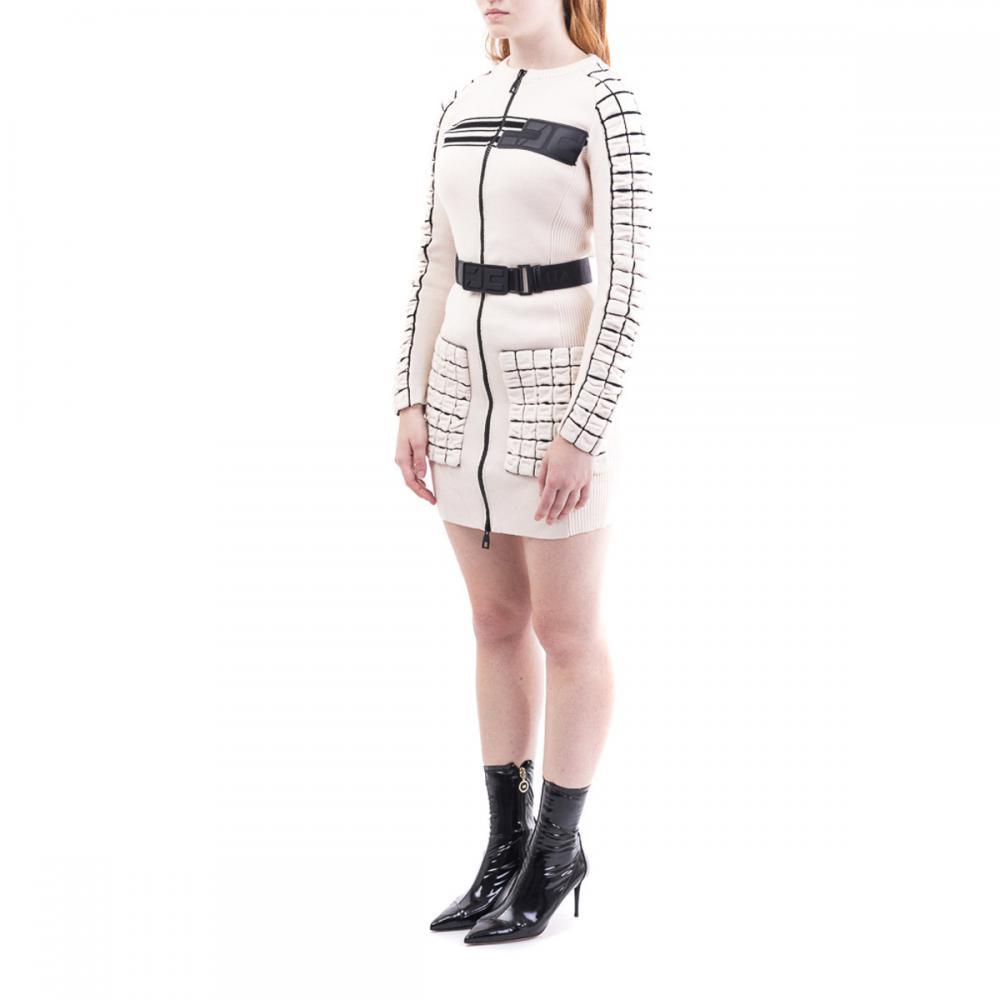 Abito maglia con cintura Elisabetta Franchi: Girocollo Chiusura con zip Patch logo sul petto Collo a costine Due tasche frontali a fessura.