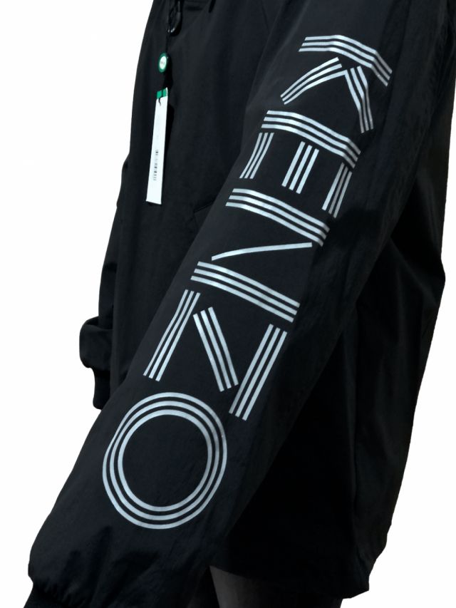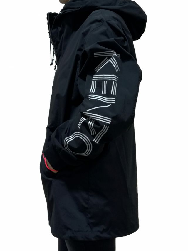 Giacca nera in misto cotone e nylon elasticizzato a manica lunga. Coulisse sul cappuccio. Abbottonatura con mezza zip e rifiniture riflettenti in tono argento sul davanti. Tasche con patta in vita. Polsini a costine. Coulisse nascosta in vita.