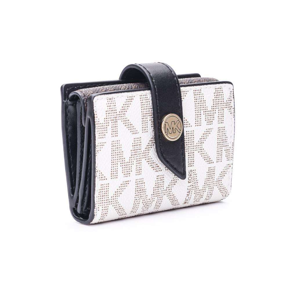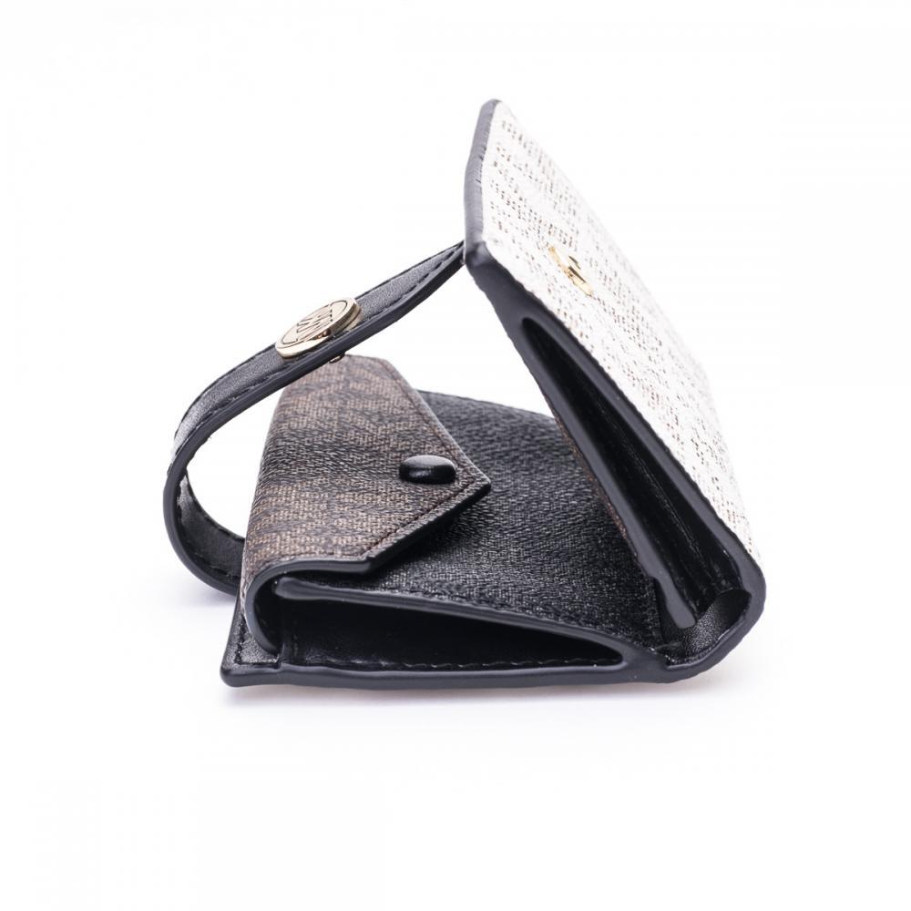 Porta Carte Michael Kors "MK CHARM": chiusura con bottone dettagli logo in finitura oro stampa logo su tutta la superficie uno scomparto per carte una tasca interna a fessura uno scomparto interno per monete Larghezza: 10cm Altezza: 7cm .