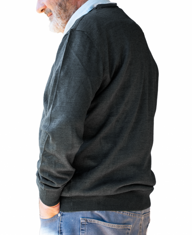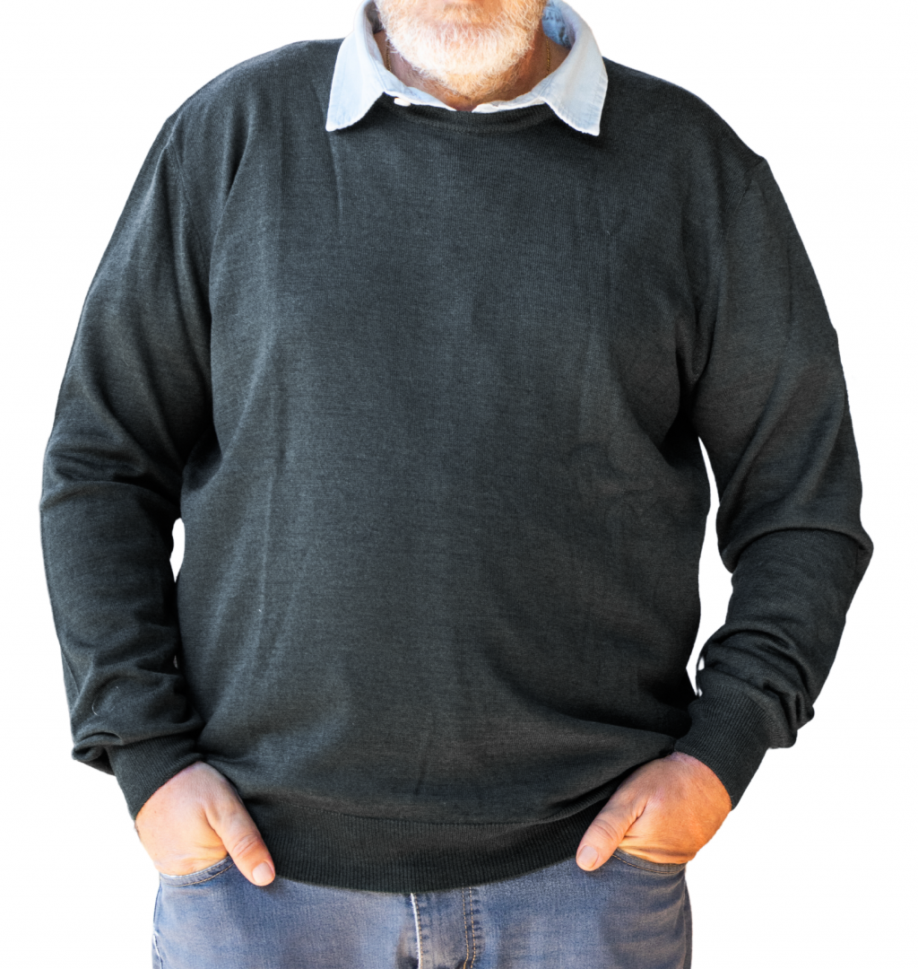 • Maglione da uomo in misto lana con scollo tondo, bordo finale e dei polsini con trama a costine.